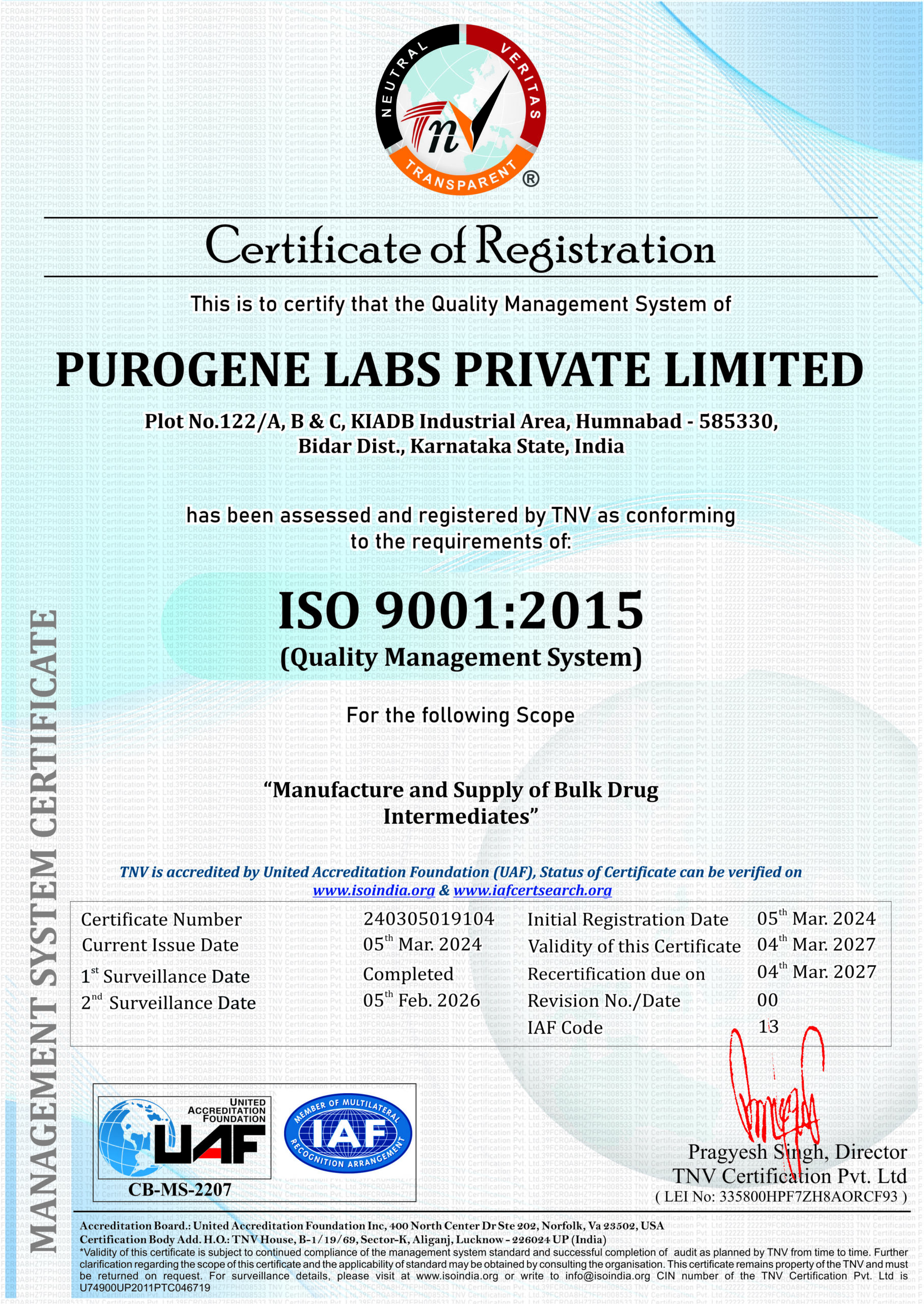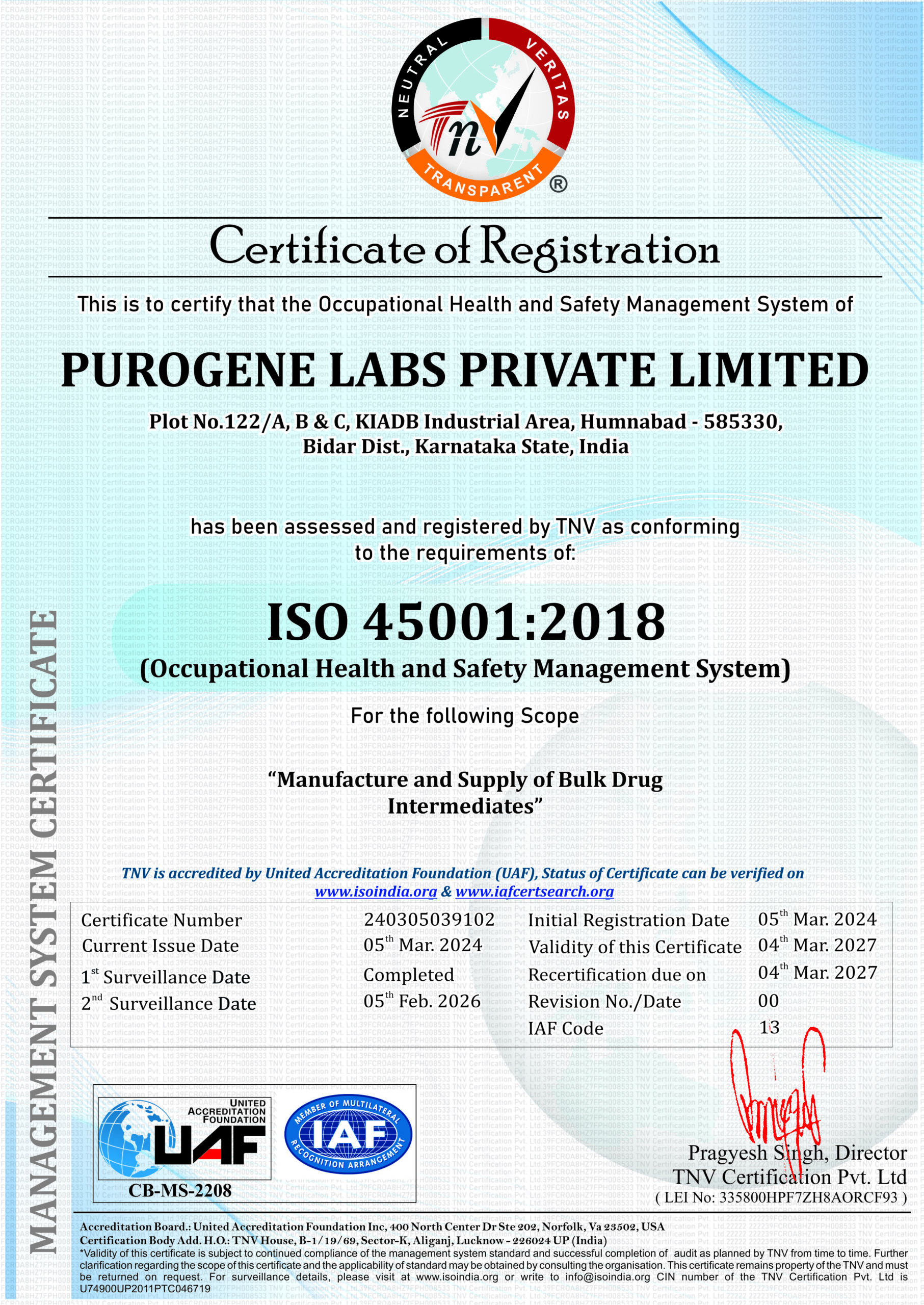 At Purogene Labs, our unwavering dedication to quality, innovation, and sustainability has earned us recognition from some of the world’s most respected regulatory authorities and industry bodies. These certifications and awards are not mere milestones — they are proof of our relentless pursuit of excellence and our commitment to the highest industry standards.