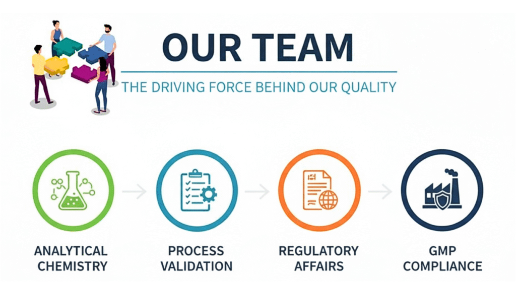 Our Quality Unit comprises experienced professionals in analytical chemistry, process validation, regulatory affairs, and GMP compliance. Their expertise ensures that every product meets the intended quality, safety, and efficacy.